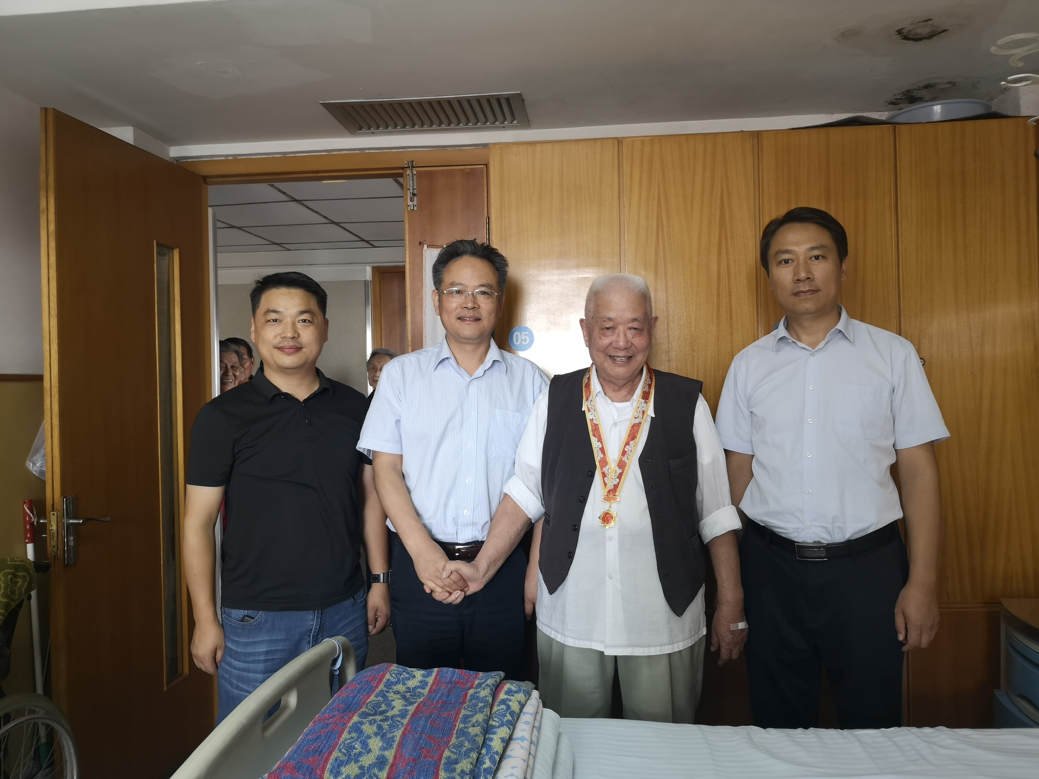 26日,院长杨建斌,党委书记任建兵一行来到离休干部张武生、季壮飞等老同志家中,祝贺他们喜获中共中央、国务院、中央军委颁发的“庆祝中华人民共和国成立70周年”纪念章,并亲自为建国前参加革命的6位老同志以及为医疗事业做出贡献的老专家等颁发了纪念章,送上慰问金。