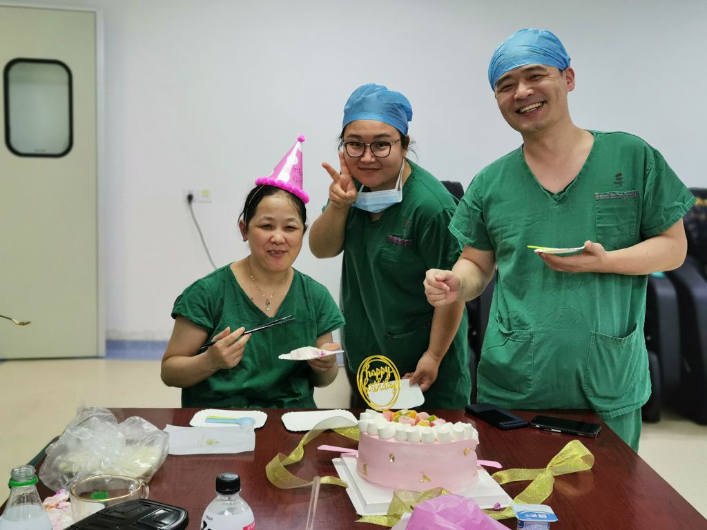 “祝你生日快乐......”7月8日下午,在南通市第二人民医院的手术室里飘出了欢快的生日歌,刚刚走下手术台的普外科副主任孙甫兰就被同事们团团围住,唱起了生日歌,原来今天是孙甫兰51岁生日。