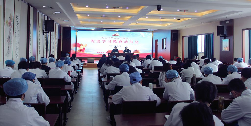 18日下午,南通市第二人民医院召开党史学习教育动员会,深入学习贯彻落实习近平总书记在党史学习教育动员大会上的重要讲话精神和省、市委及市卫健委关于全面开展党史学习教育的工作部署要求。会议由党委专职副书记沈皓主持,院领导班子成员、中层干部、党务工作者代表90余人参加。