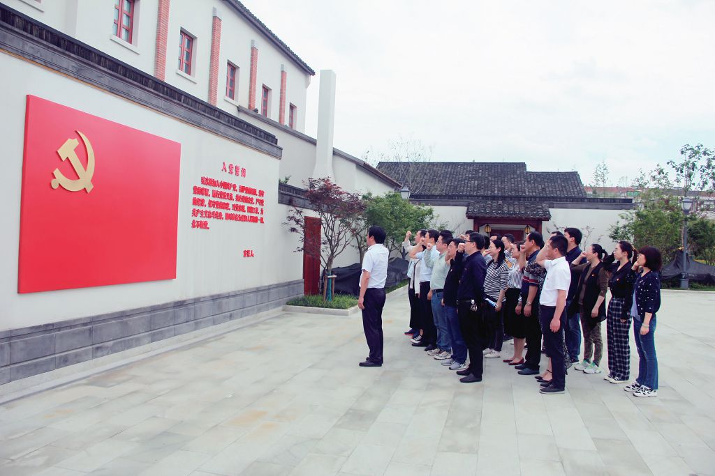 党员干部们乘车赴嘉兴地方党史陈列馆,在陈列馆的宣誓墙前,党委书记陈建华带领党员干部们庄严宣誓,重温入党誓词,铮铮誓言,铿锵有力,明示拳拳红心。