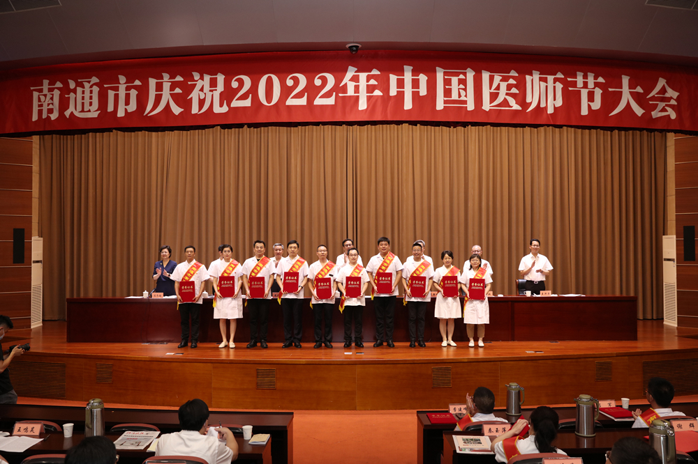 19日下午,市委市政府在市行政中心报告厅隆重召开“中国医师节”庆祝大会,弘扬伟大抗疫精神,表扬激励先进典型,进一步动员全市卫健系统和广大医护人员不忘初心、牢记使命,更好护佑人民群众生命安全和身体健康,为坚决巩固疫情防控成果、加快建设健康南通作出新的贡献,以实际行动迎接党的二十大胜利召开。