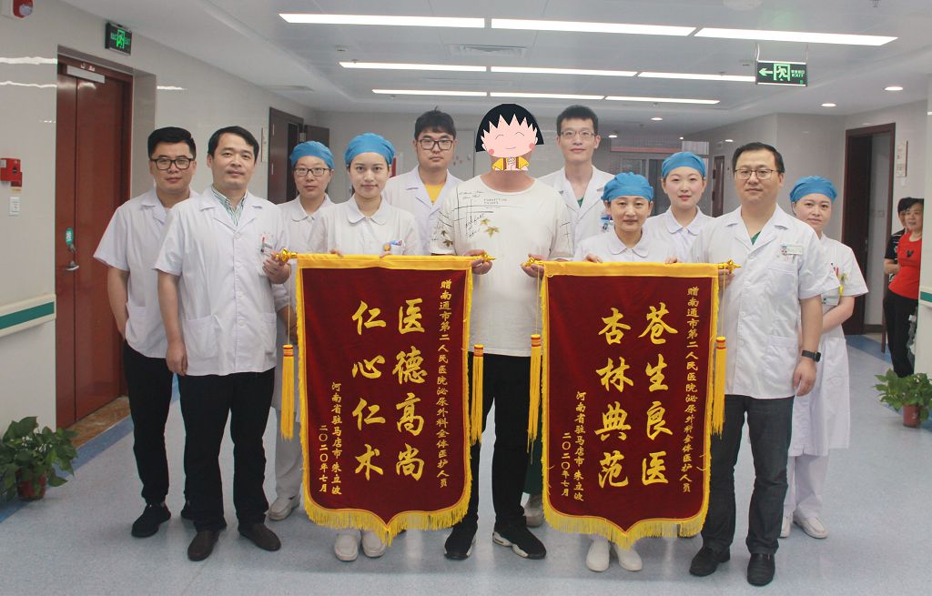 【钢筋贯穿 死里逃生】被1米长、2公分粗螺纹钢贯穿腹部的他,为表感谢送两锦旗……