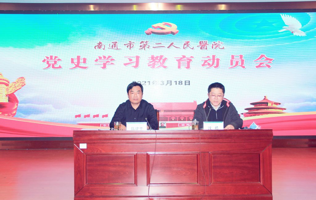 18日下午,南通市第二人民医院召开党史学习教育动员会,深入学习贯彻落实习近平总书记在党史学习教育动员大会上的重要讲话精神和省、市委及市卫健委关于全面开展党史学习教育的工作部署要求。会议由党委专职副书记沈皓主持,院领导班子成员、中层干部、党务工作者代表90余人参加。