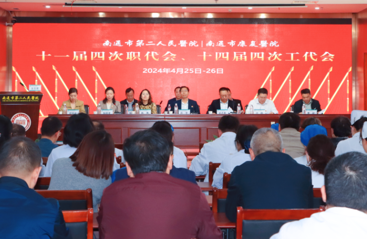 4月25日-26日,南通市第二人民医院第十一届四次职工代表大会暨十四届四次工会会员代表大会顺利召开。院领导班子、职工代表、全体中层干部等200余人齐聚一堂,共商医院发展大计。