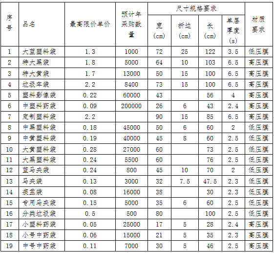 项目名称:南通市第二人民医院塑料袋项目