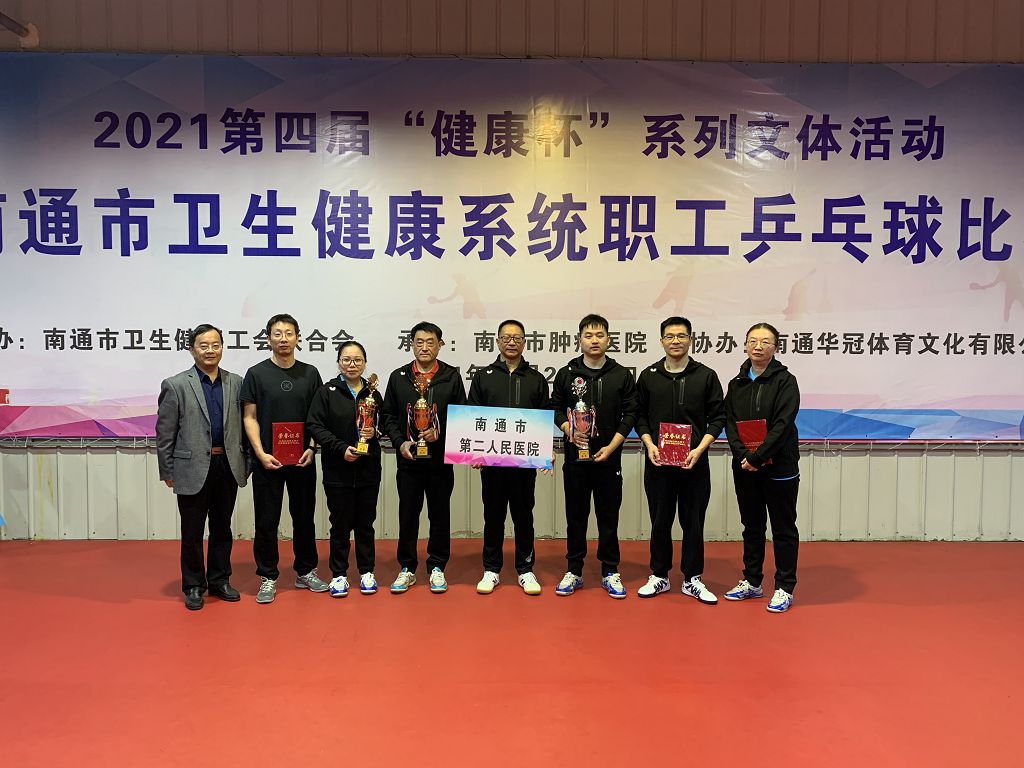 11月21日,经过两天的角逐,由南通卫生健康工会联合会主办的南通市卫生健康系统第四届“健康杯”系列文体活动职工乒乓球比赛,在南通海信乒乓球馆圆满落下帷幕,南通市第二人民医院(南通大学附属康复医院)乒乓球队获得了团体第三名,董凯凯获得男子单打亚军,张丹丹获得女子单打季军,陈慧获得女子单打第四名的好成绩,本次比赛共有12支队伍参加。