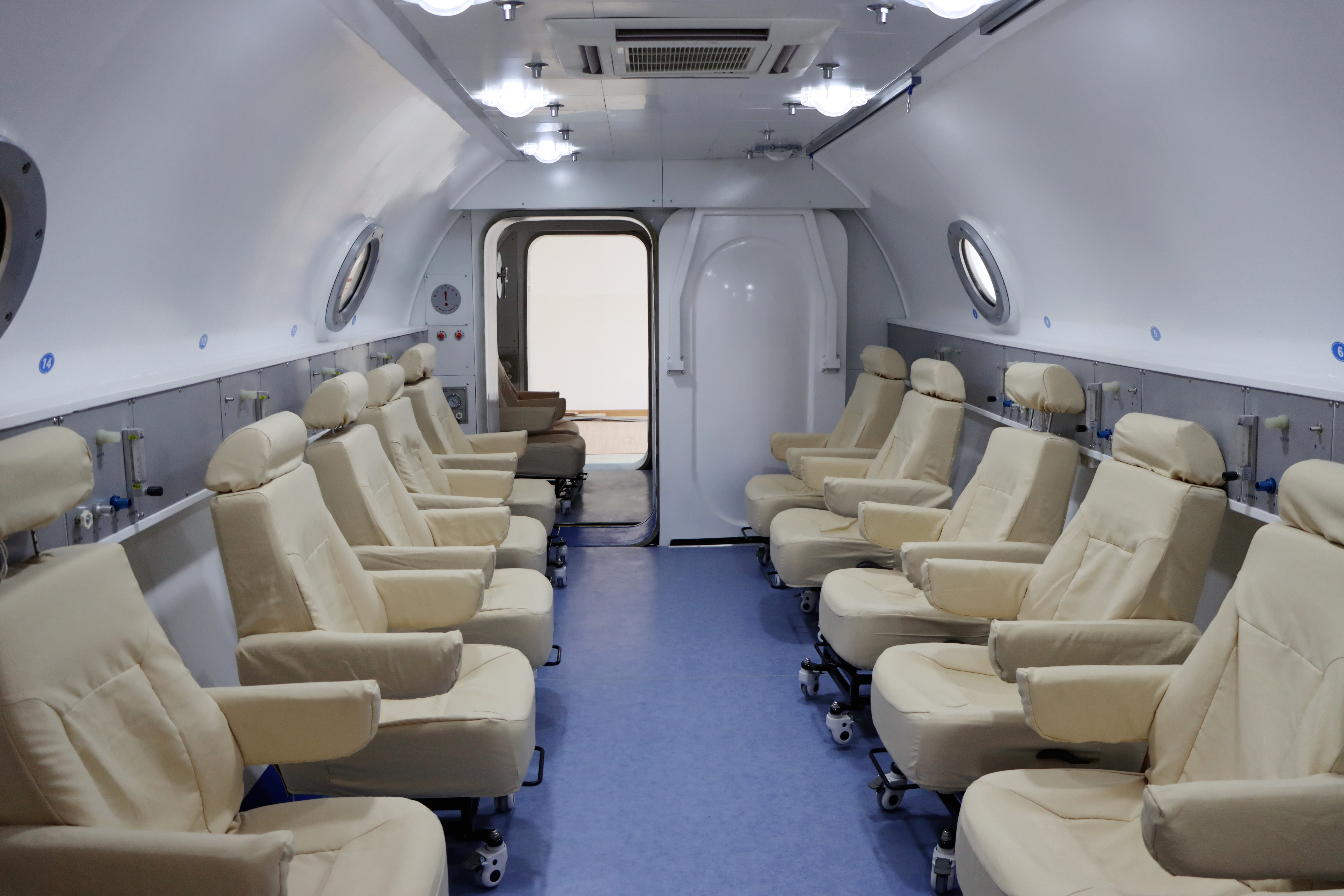 每个座位上的吸氧装置均配备了