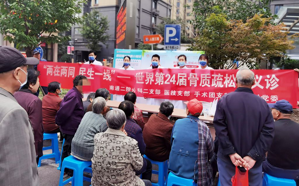 随着我国逐渐进入老龄化社会,骨质疏松如同高血压、糖尿病一样发病率和患病率不断提升,10月20日,在第24个“世界骨质疏松日”来临之际,为深入开展“两在两同”建新功行动,南通市第二人民医院(南通大学附属康复医院)外科二党支部、医技党支部和手术团支部的志愿者们前往国庆村党群服务中心举行了“两在两同,民生一线——第24届世界骨质疏松日”义诊活动,用实际行动服务社区居民和骨质疏松患者。