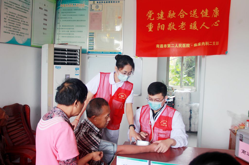 金秋送爽,丹桂飘香,为弘扬中华民族敬老爱老的传统美德,在重阳节来临之际,南通市第二人民医院(南通大学附属康复医院)各党支部、护理部、团委的党员志愿者和医护志愿者们分别前往敬老院、居民社区、护理院等地开展“党建融合送健康 重阳敬老暖人心”义诊活动。